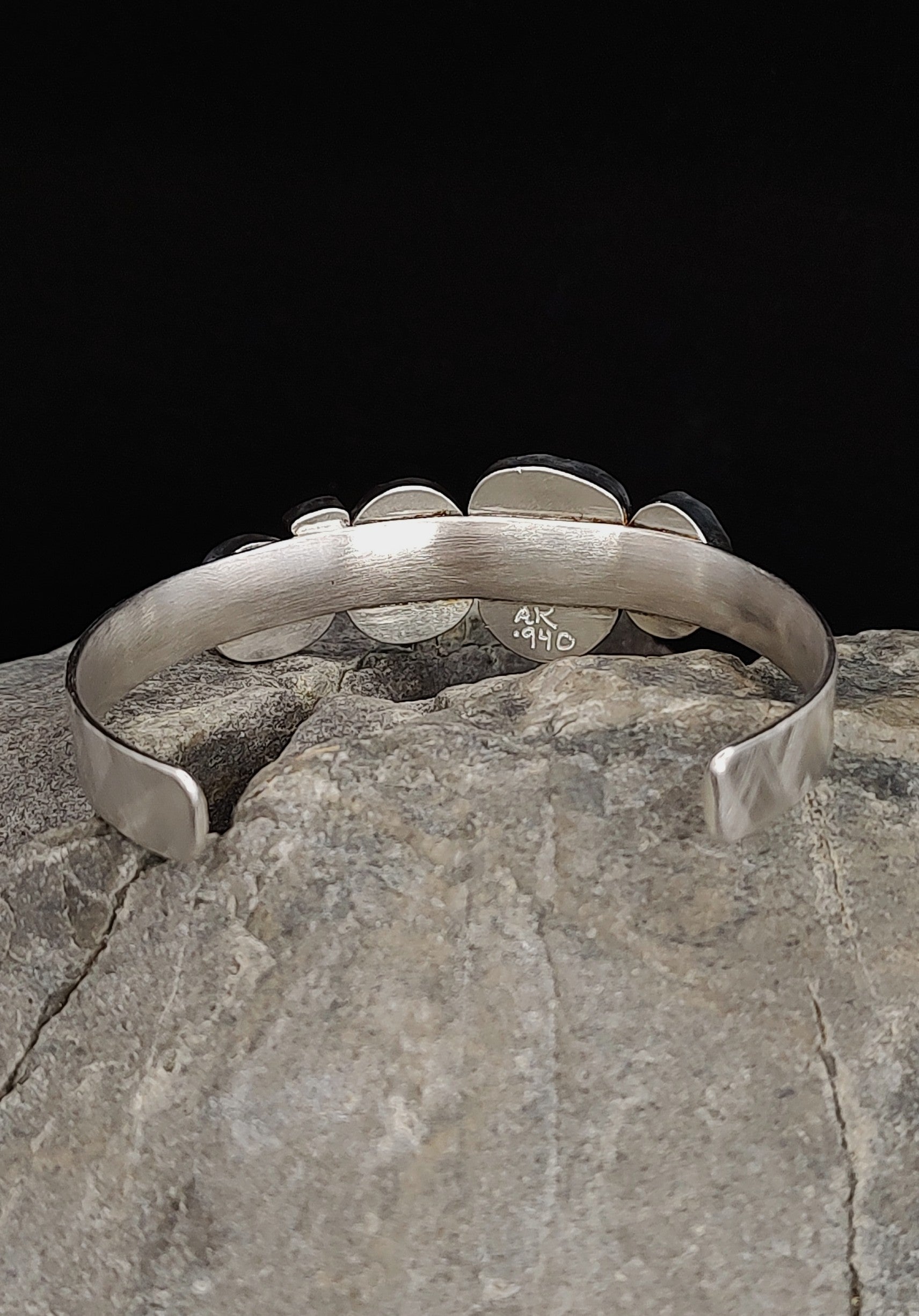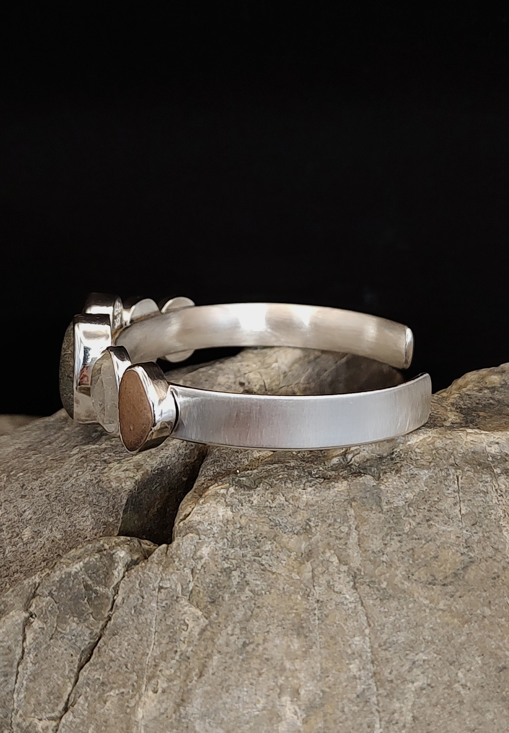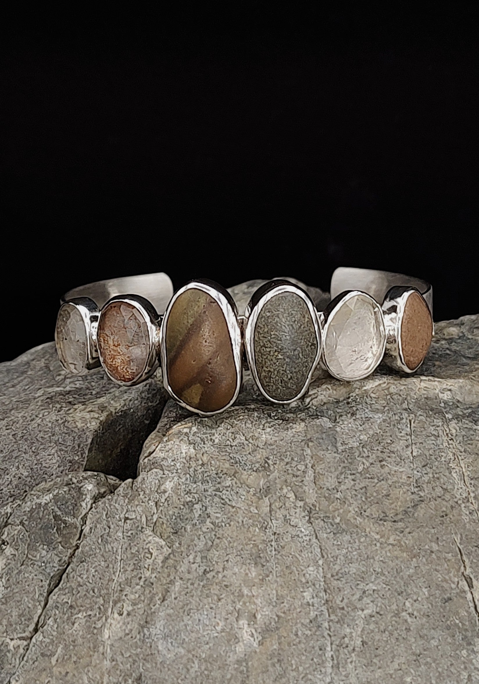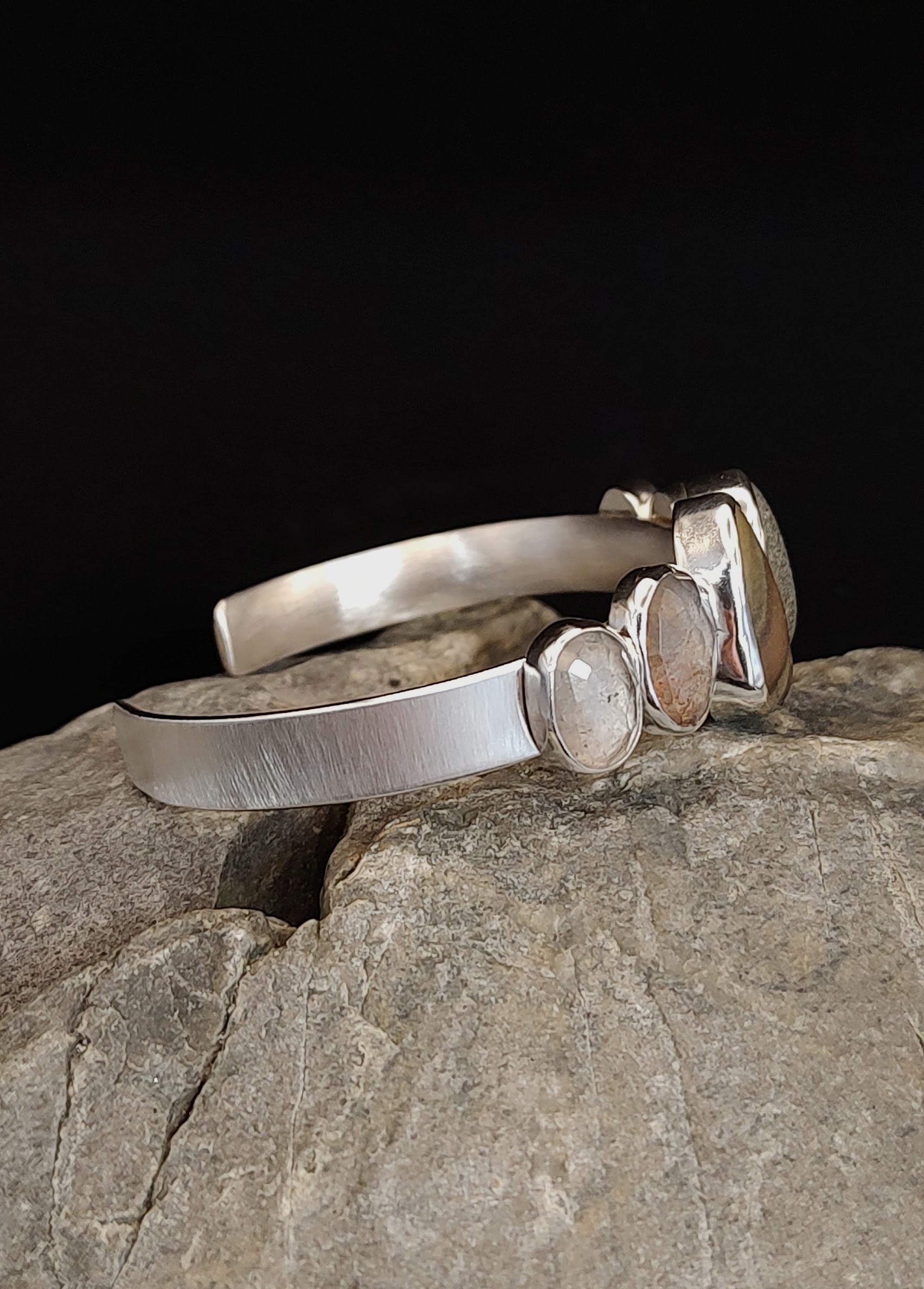 Cuff bracelet- rose cut rutilated quartz, rose cut garden quartz, beachstones